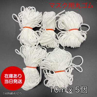 SI 【在庫あり】 【送料無料】 マスクゴム 50m 2.5mm マスク用 ゴム 丸ゴム マスクごむ ますくゴム マスクのゴム マスク用ゴム紐 手づくりマスク 手作りマスク ハンドメイド 手芸 ウィルス対策 即納 複数枚 当日発送 送料無料 柔らかい 当日発送 10m 5個 業販